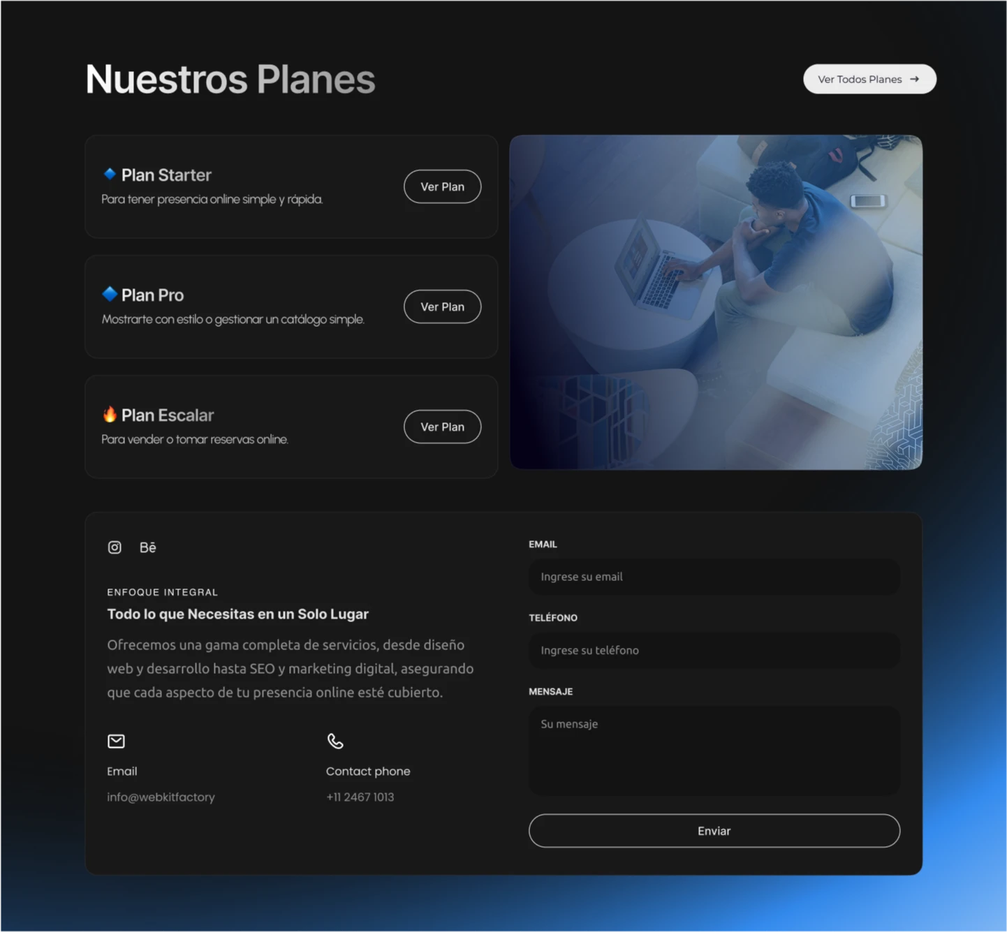 Ofrecemos una gama completa de servicios, desde diseño web y desarrollo hasta SEO y marketing digital, asegurando que cada aspecto de tu presencia online esté cubierto.